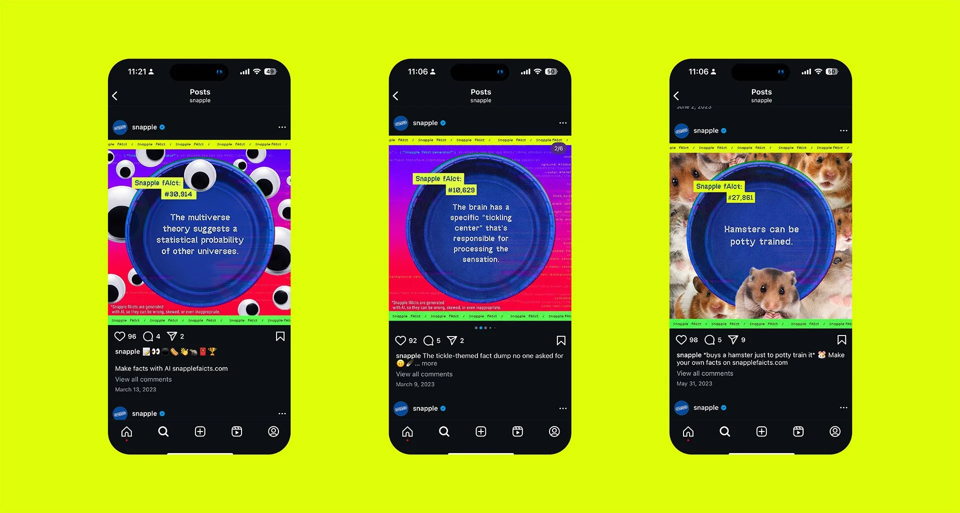 The best user generated fAIcts were featured across Snappleās social platforms.